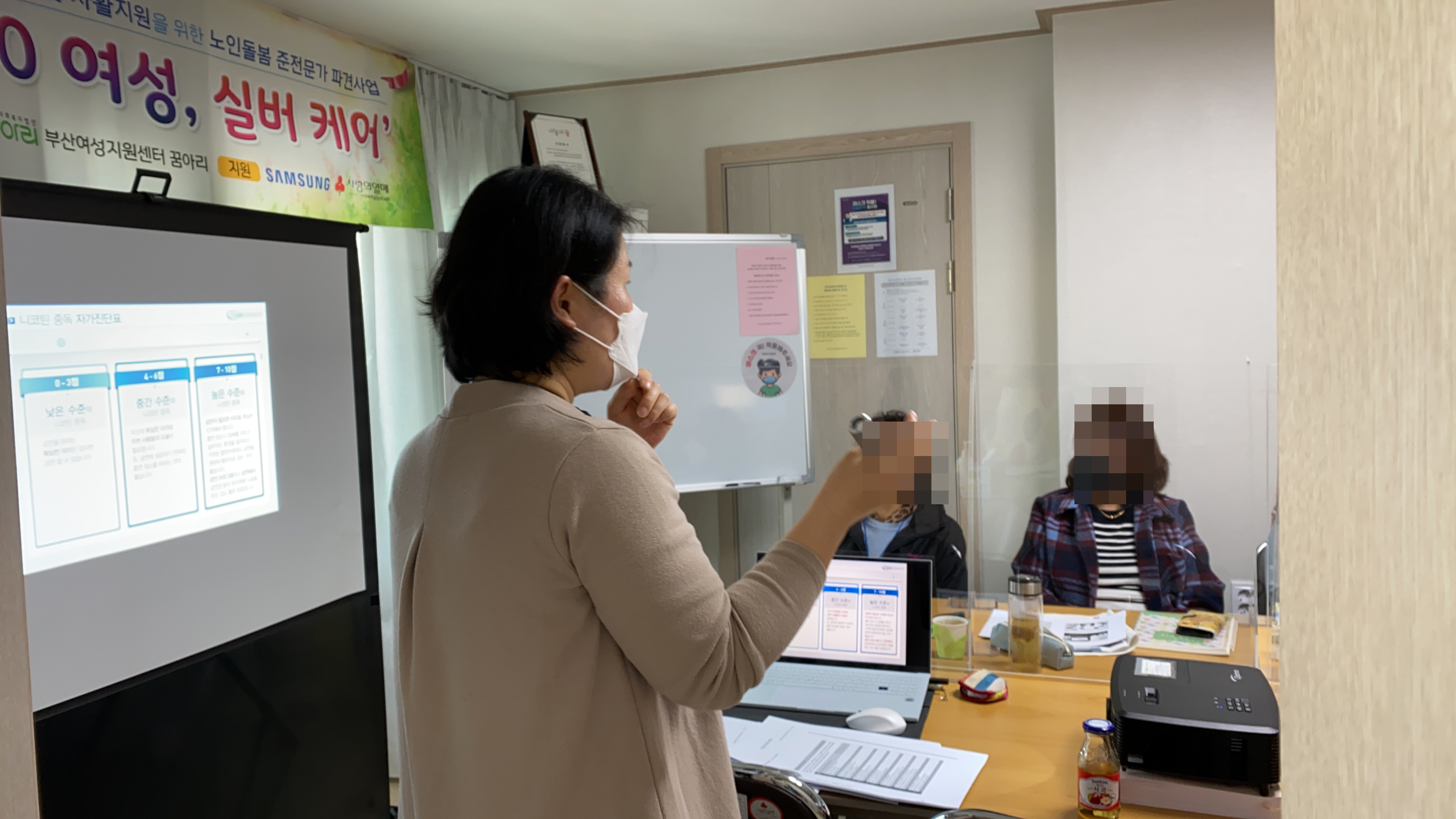 ![]() ![]() ![]() 중장년 폭력피해여성의 치유 및 자활지원을 위한 노인돌봄 준전문가 파견사업 ‘5060여성, 실버케어’ 4일차 집단 교육을 실시하였습니다. 10시~12시에는 소양교육(장애인 및 노인인식개선)를 실시하고 12시~13시에는 맛있는 점심 도시락을 먹고 13시~15시에는 약물,알콜 상담치료(흡연)를 하였습니다. 이번회기는 하반기 돌봄이 필요한 노인가정에 파견나갔을때 어르신 대상으로 활용할 수 있는 활동위주와 일상생활에서의 흡연의 위험성에 대해서 배울 수 있는 뜻깊은 시간이였습니다. |