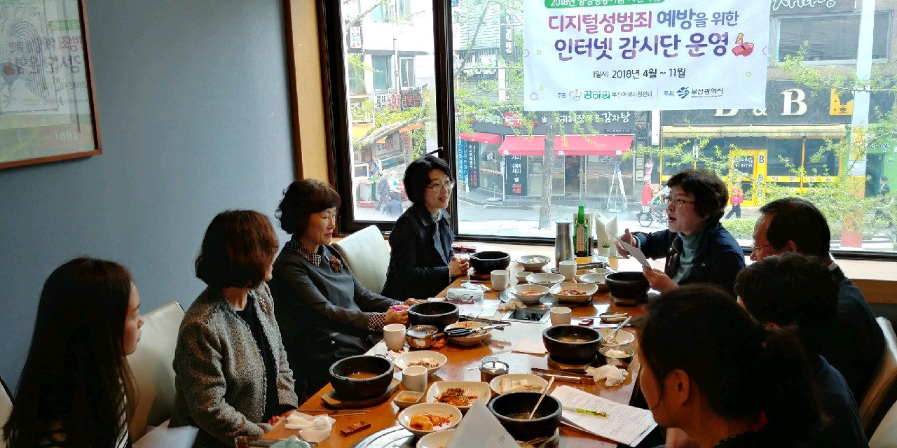 ![]() ![]() 디지털성범죄 예방을 위한 인터넷 감시단 운영 운영자문위원 초기회의 4월 10일 화요일 12시 사미헌 |