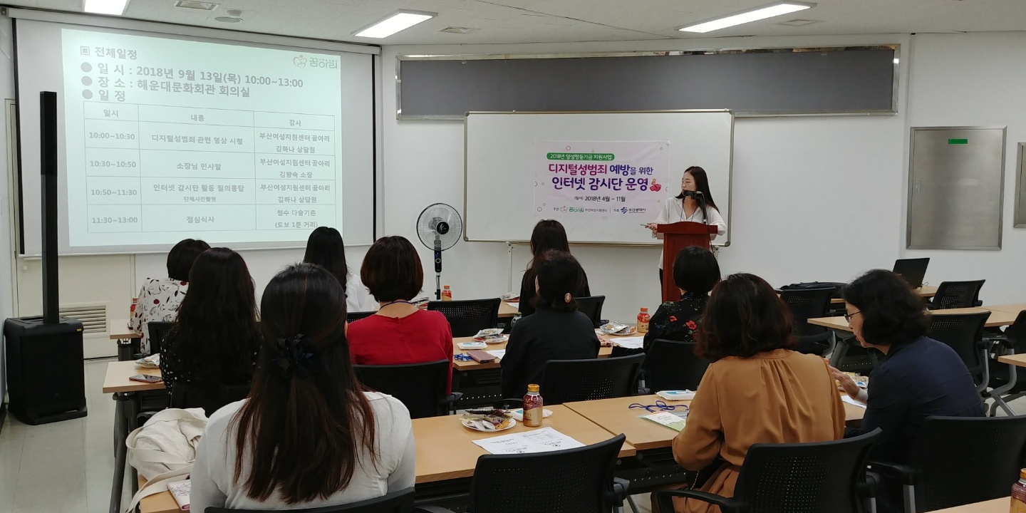| 이전글 ▲ | 2018년 부산시 양성평등기금 지원사업 디지털성범죄 예방을 위한 인터넷 감시단 운영 발대식 및 교육 | ||